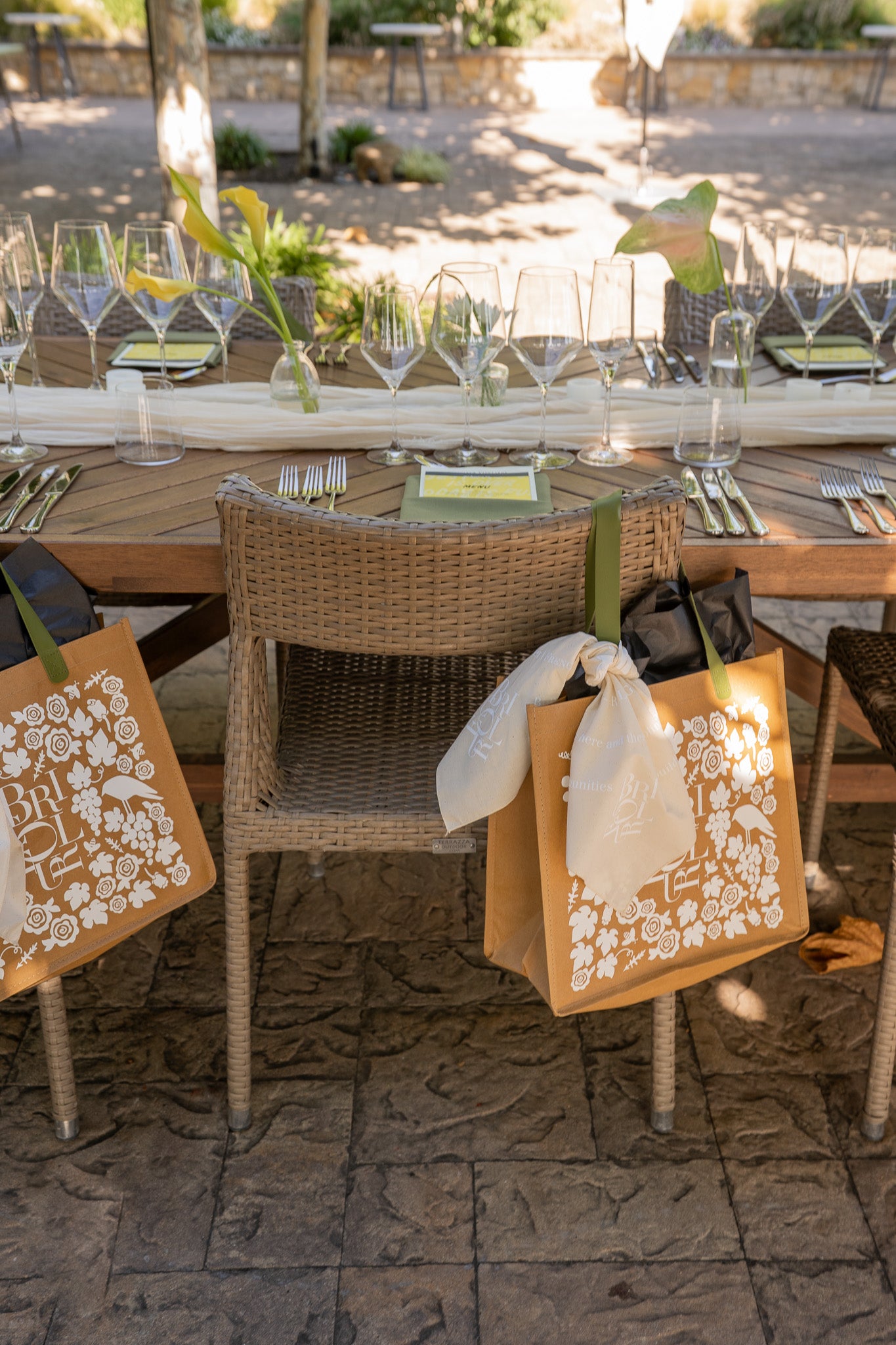 This intimate dinner included a guided tour of our estate culinary gardens with Bricoleur Vineyards Executive Chef Todd Knoll to emphasize Bricoleur's "estate to plate" philosophy. Each attendee was gifted a Bricoleur Vineyards goody bag complete with Kick Ranch Sauvignon Blanc, Estate Olive Oil, and other fun items to remember the trip by.