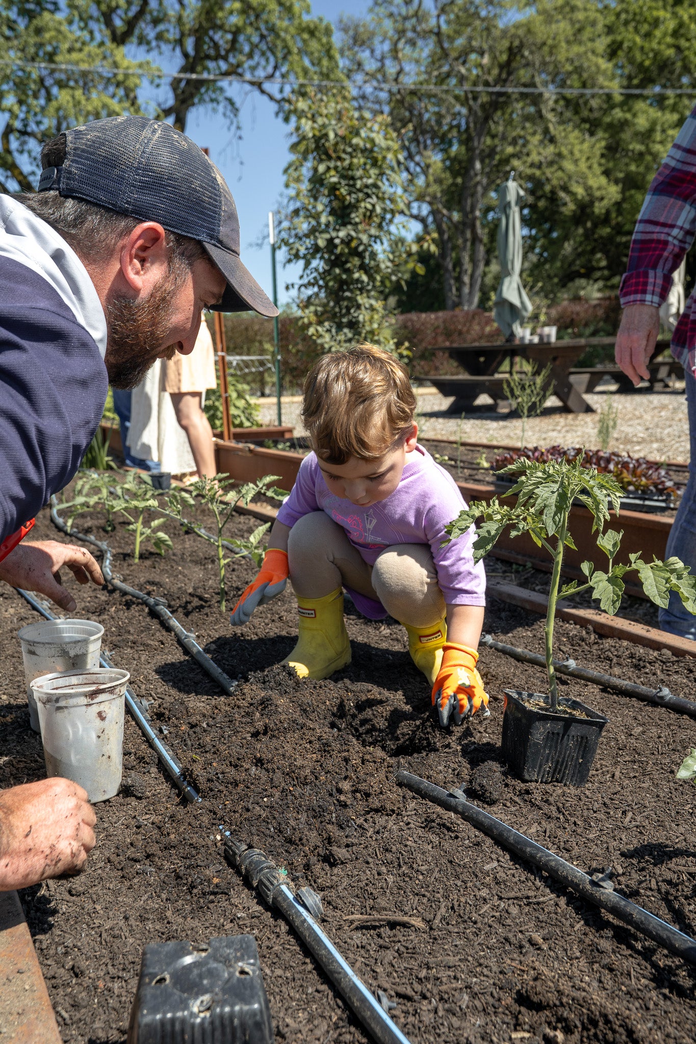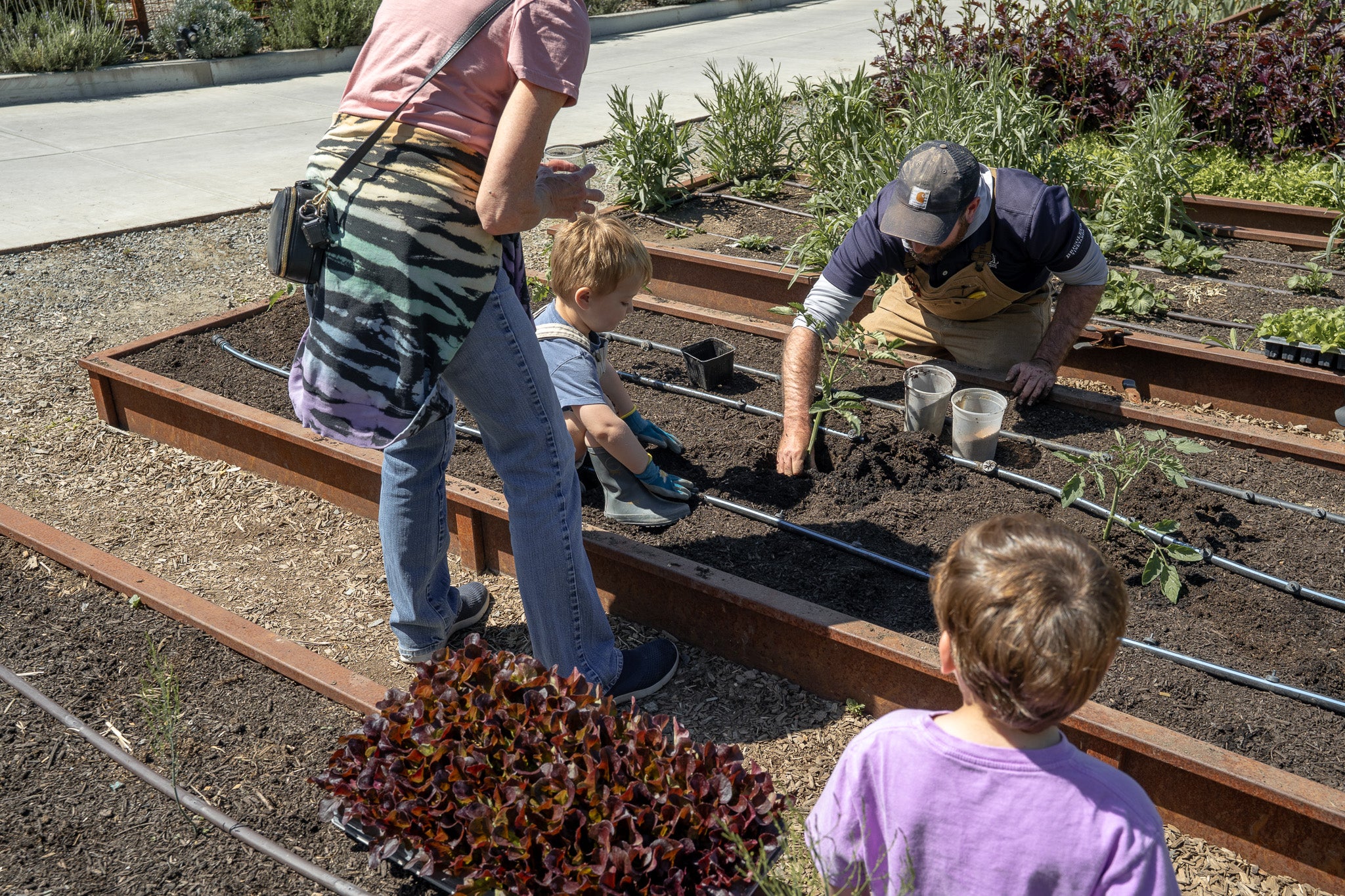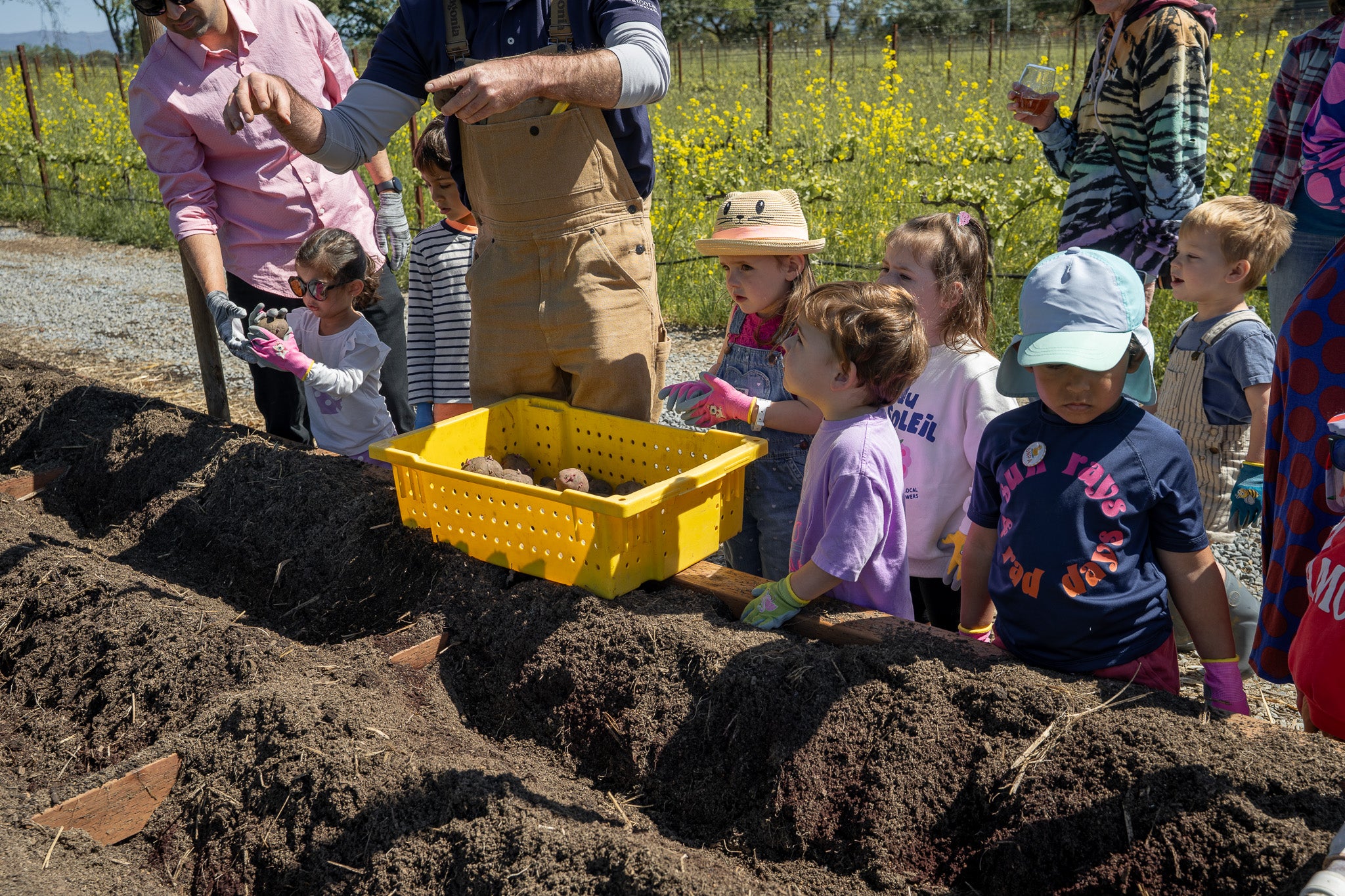 The first stop of the day was our Secret Garden, tucked behind rows of Pinot Noir vines. It’s one of four culinary gardens on our estate and home to a variety of seasonal produce and flowers. During the class, families planted potatoes in the raised garden beds, which will be ready to harvest in about two to three months. The kids had fun picking out which potatoes they got to plant in the garden beds, and even more fun covering them with dirt!