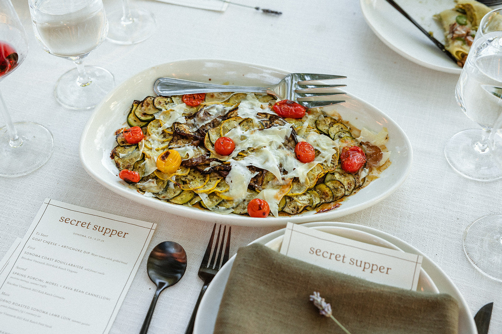 Guests gathered around a single, beautifully set table for an intimate evening where each course was thoughtfully crafted to showcase the precision-farmed wines of Bricoleur Vineyards. With every pour, stories were shared and connections were made, as the culinary team presented a seasonal menu designed to highlight the harmony of food and wine. This secret supper was a dreamlike celebration of flavor, place, and community.
